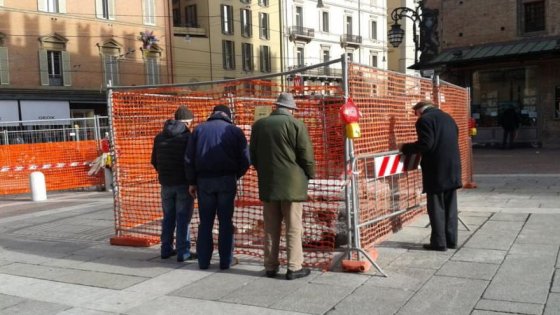 Emblematico è il caso dell’interdizione dell’area di cantiere, attualmente delimitata da un semplice nastro bianco e rosso e da cartelli scritti a pennarello su cartone.