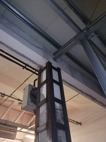 Pilastro centrale dell’autorimessa incamiciato da una struttura in ferro
