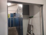 Armadietti non ancorati e locale non compartimentato.